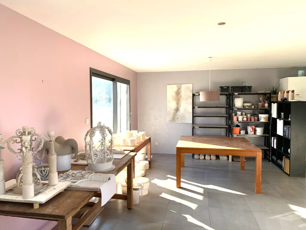 Mon atelier se situe en Dordogne. J’y élabore tableaux et sculptures mais également une ligne d’objets décoratifs pour l’habitat. Chaque pièce, est réalisée à la main ou tournée au tour. J’apporte un soin particulier à chacune de mes créations: Des pièces uniques ou produites en petites séries. L’atelier est ouvert sur rendez-vous.