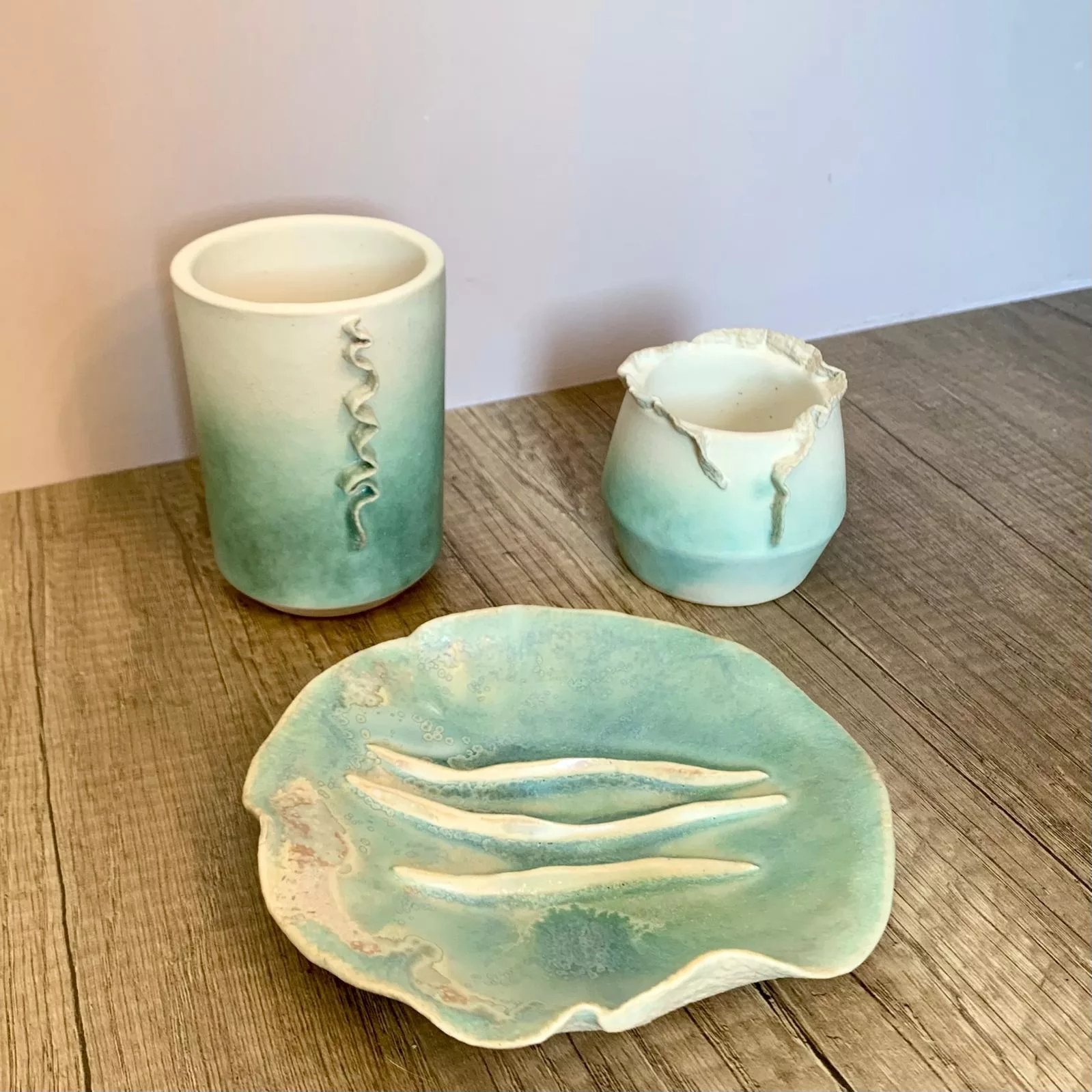 Du fait de leur caractère artisanal, chaque pièce est unique, il est possible qu'il y ait de légères variations de formes, couleurs ou tailles de l'une à l'autre.